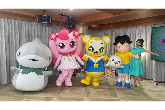 【写真】キャラクターと一緒にポーズする上原りさ